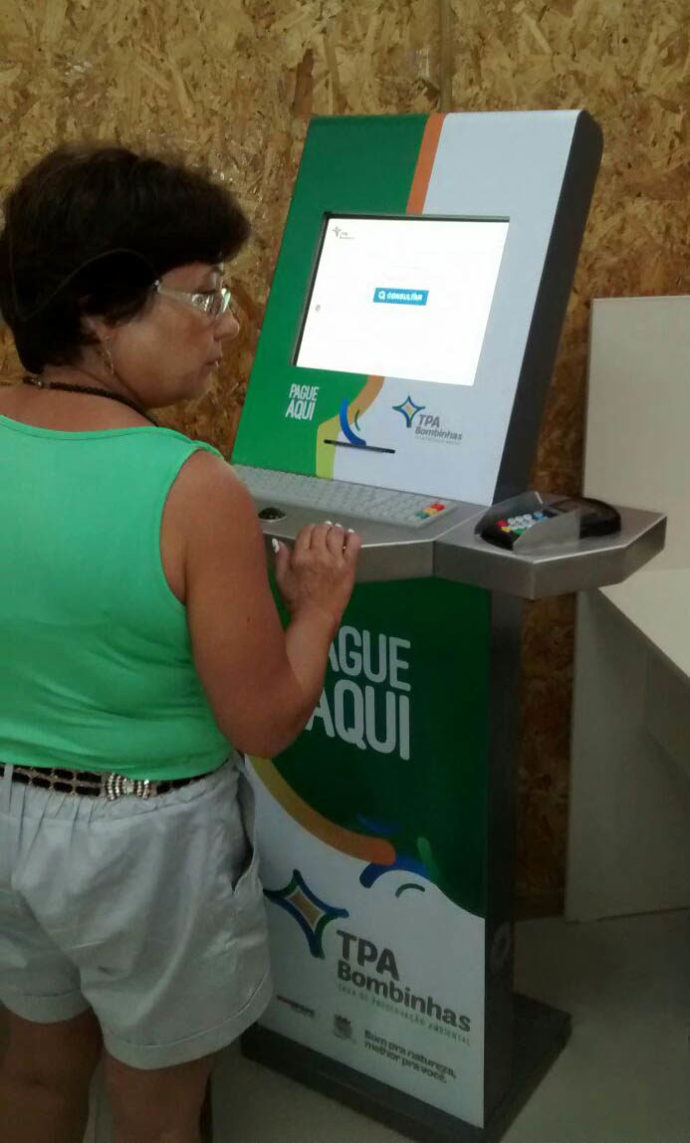Aiming at the high number of tourists visiting the city of Bombinhas – Santa Catarina / Brazil, in the summer, the municipal government decided to innovate and increase the agility of services. For the payment of the Environmental Conservation Fee, were installed two TCI Slim – Consultation Kiosks. The kiosks are seen as a new facility provided to tourists, because it allows the payment of the fee at strategic points through credit card.